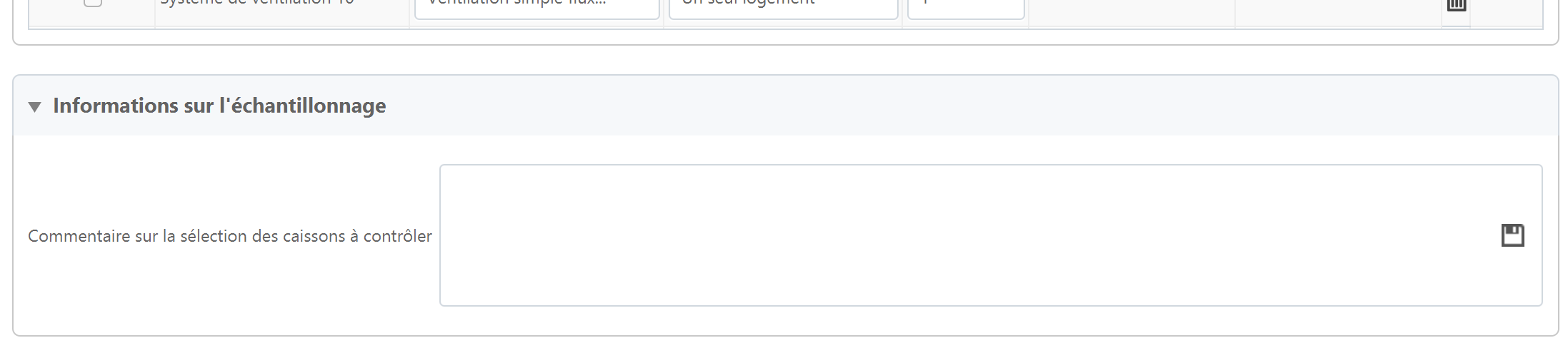 De même que pour la sélection des caissons, sélectionnez les logements à contrôler, et précisez dans le champ "Informations sur l'échantillonnage juste au dessous, les raisons du choix réalisé.
